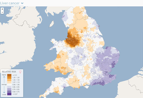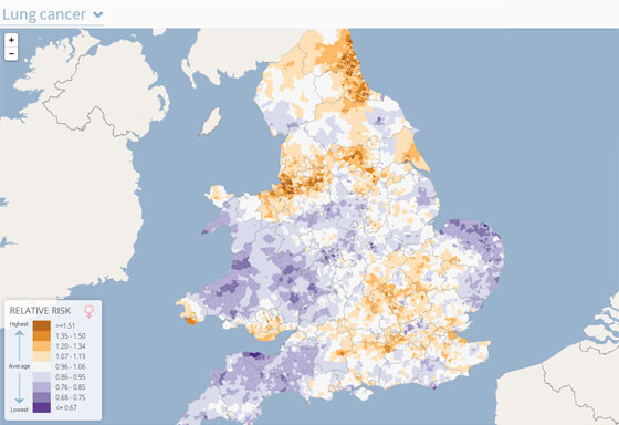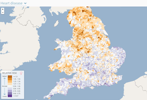 كشف باحثون عن خريطة إلكترونية جديدة لانجلترا وويلز للمستخدمين تسمح لهم بإدخال الرمز البريدي الخاص بمنطقتهم والتعرف على خطورة الإصابة بـ 14 مرضا في مجتمعاتهم، كأمراض القلب وسرطان الرئة. وتُقدم الخريطة معلومات طبية على مستوى السكان في انجلترا وويلز.