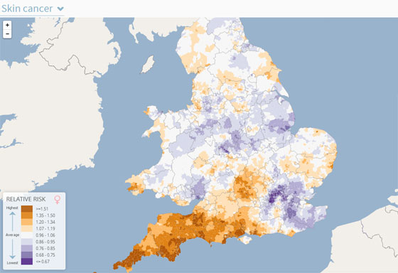 الأطلس يظهر أن حالات سرطان الجلد أكثر في جنوبي-غرب إنغلترا