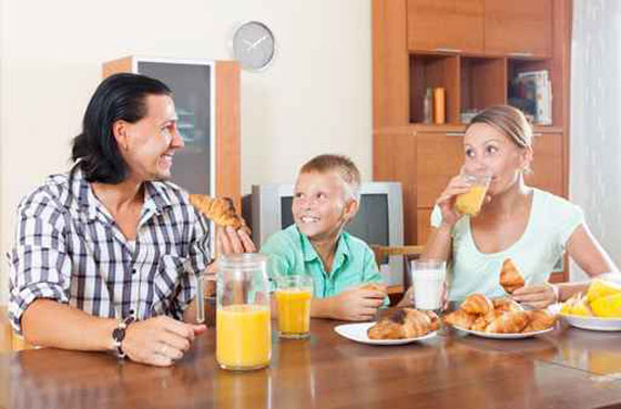 - وجبة الفطور، وهي تؤمن ربع حاجة الجسم اليومية، وتتألف من الحليب ومشتقاته، والعصير، والحبوب الكاملة، والمربى، وبعض الشاي.