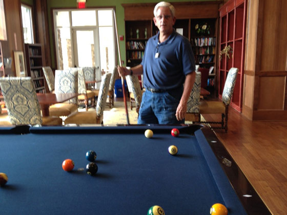 وأجرى لاسين بحوثه في مركزي نشاط المسنين في كوبنهاغن، حيث يلتقي الرجال الذين اعمارهم 70 – 95 سنة اربع مرات اسبوعيا لممارسة لعبة البلياردو. ويقول "أولا – لعبة ممتعة تدخل البهجة والسرور الى ممارسها، وهذا يحسن نوعية حياته ويجعله نشيطا. وثانيا – اللعبة عبارة عن تمارين مفيدة للمسنين لأنها تضم فترات نشطة وهادئة، وهذا يسمح بممارستها ساعات عديدة".