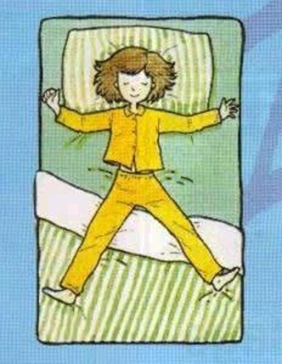 - النوم على الظهر مع فرد الذراعين: يعتبر من أفضل الأوضاع في النوم لسلامة العمود الفقري، كما أنه جيد للرقبة طالما تستخدم وسائد كثيرة، فيما كانت المعلومات الشائعة عن النوم على الظهر أنه مرتبط بشكل كبير بالشخير ومشكلة إنقطاع التنفس اثناء النوم.