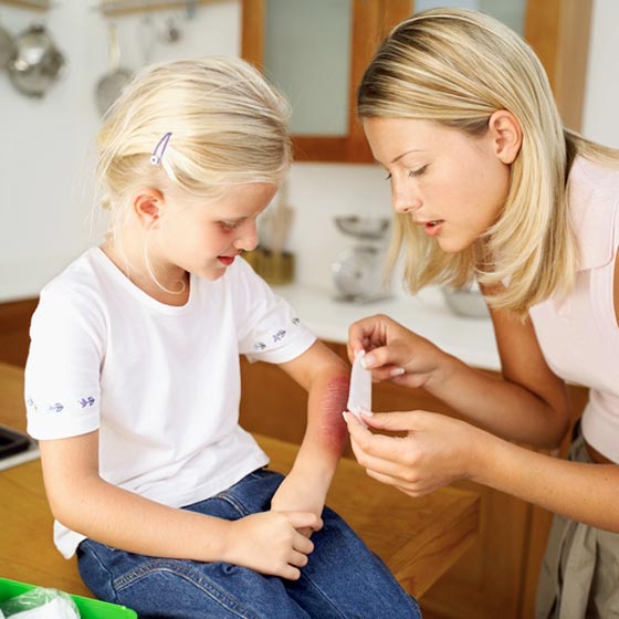 - إذا كانت الحروق توجد في أجزاء كبيرة من اليدين أو القدمين أو الوجه أو الفخذين أو الردفين أو في مفصل رئيسي من مفاصل الجسم فيجب عليكِ أن تذهبي بطفلكِ إلى الطبيب على الفور.