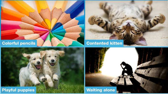 تحتوي جميع الصور على عناصر إيجابية، فلم يتعرض أحد للأذية في أي واحدة منها، وحصل الأشخاص على المساعدة في الحالات الأربعة. وبحسب الباحث في السعادة والكاتب ريك هانسون، فإن الأشخاص السعداء يبحثون عن الإيجابيات في كل تجربة، ويحاولون التمسك بها.
