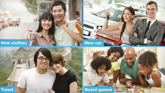 أ) شراء ملابس جديدة، ب) شراء سيارة جديدة، ج) السفر، د) شراء الألعاب والأحجيات السفر والألعاب التي يمكن لأفراد العائلة المشاركة فيها. إذ تظهر دراسات أن قضاء الوقت في النشاطات التي تقربنا من الأصدقاء والعائلة أو تقوي الثقة بالنفس تجعلنا نشعر باكبر قدر من السعادة، مثل السفر أو لعب الأحجيات أو التعلم على آلة موسيقية من العائلة أو الأصدقاء.