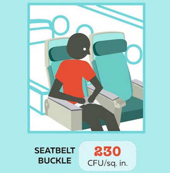 يحتوي مشبك حزام الأمان على 230 مستعمرة من البكتيريا لكل إنش مربع.