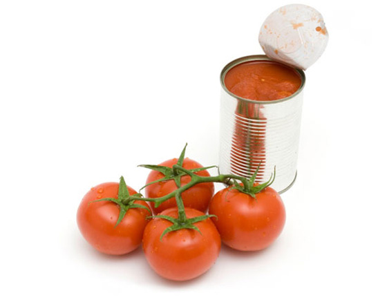 - الطماطم المعلبة: حيث أظهرت دراسة نشرت في أيار/ مايو عام 2013 أن بطانة تلك العلب تحوي مادة كيميائية اسمها BPA تؤثر في الواقع على طريقة عمل الجينات لدى أدمغة مجموعة من فئران التجارب، وهو ما قد يؤدي للإصابة بمرض السرطان.