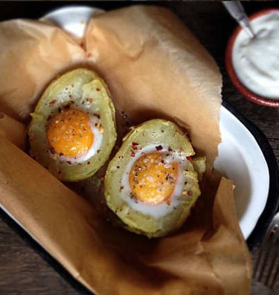 وصفات طعام بولندية: يمكن الاستمتاع بوجبة البطاطا المشوية مع البيض. ولتحضيرها، اقطع حبة البطاطا إلى نصفين، وضعها في الفرن. أخرجها قبل انتهاء فترة طبخهما بشكل كامل بخمس دقائق. باستخدام الملعقة، أزل بعض البطاطس في الوسط، وفي قلب التجوف افقس بيضة، وأعدها إلى الفرن حتى تستوي البيضة حسب الرغبة. زين الطبق بالملح البحري والفلفل الأسود.