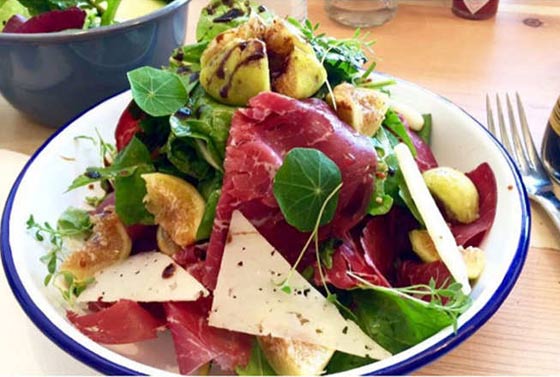 يمكن أيضاً إضافة بيضة مسلوقة إلى سلطة من الخس والجرجير وإضافة بعض الفاصولياء المسلوقة