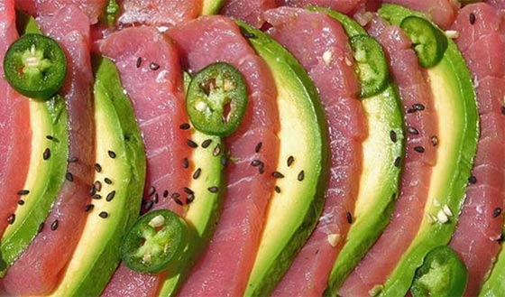 بحسب ما أظهرت الأبحاث، فإن تناول أطعمة غنية بالأحماض الدهنية المفيدة "الأوميغا 3،" مثل التونا والسلمون والأفوكادو، يزيد نسبة النشاط الذهني ويقلل التوتر. وللاستفادة من الزيوت المتواجدة في هذه الأطعمة، يمكن صنع طبق من الأفوكادو والسلمون المقطع، مع قليل من الفليلفة وصلصة الصويا والليمون.