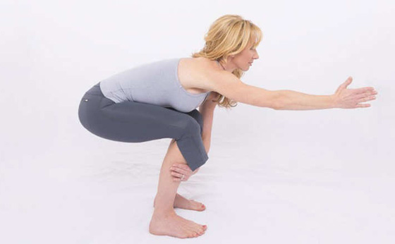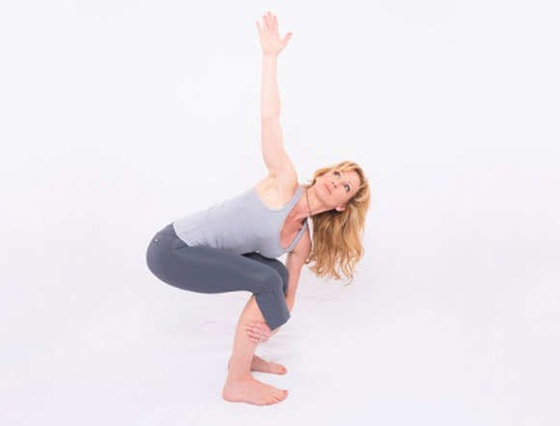 هذه الوضعية تدرب على التنفس مع تنظيم وضعية الحوض والورك معا، كما أنها تدفعنا على التركيز على أسلوب التنفس.