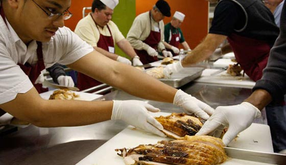 كن لطيفاً: مساعدة غيرك، مثل هؤلاء الأشخاص الذين يعطون الطعام للمحتاجين، يعطي شعوراً إيجابياً للطرفين.