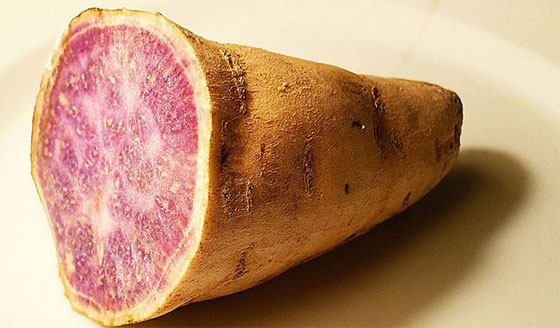 القلقاس مليء بمادة الانثوسيانين التي تعطيه لونه البنفسجي.