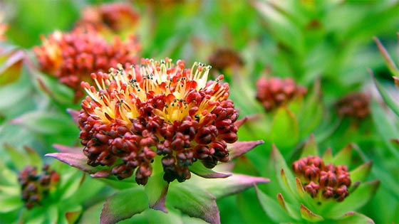 3- "الجذر الذهبي" أو (Rhodiola rosea)، ويعود الاسم إلى لون جذر هذا النبات، يستخدم هذا النبات للتنشيط والتقوية وزيادة القدرة على التحمل وزيادة القدرات الذهنية وكوسيلة لتكييف جسم الإنسان مع زيادة الجهد والتأثيرات المضرة. ويفضل استخدام منقوع من هذا النبات لتحسين النتائج الرياضية ولاستعادة القوى بعد ممارسة تمارين متعبة. وتعتقد الناس (من دون إثباتات علمية) أن هذا النبات يفيد عند وقوع خلل في القلب والأوعية وعند السكري والتدرن الرئوي وأمراض السرطان.