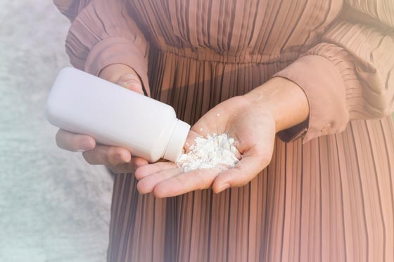4- بودرة التلك التى أثبتت العديد من الدراسات مؤخرا احتوائها على مواد تؤدى لتهيج الرئة والإصابة بسرطان المبيض.