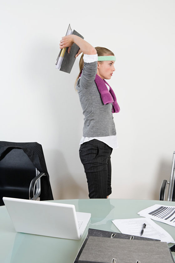 4- تمارين سريعة: ليس ثمة ما يمنع من آداء بعض التمارين الرياضية، فعندما تحرك جسدك تنتعش العضلات وتنشط معها الدورة الدموية ويزيد الأكسجين في جسمك، ما يساعد على ضخ دفعة إضافية من هرمون الاندروفين الذي يستمر أثره لساعات إضافية حتى بعد الانتهاء من آداء التمارين. لا يحتاج الأمر لآداء مكثف للتمارين أو لفترة طويلة، فـ 10 دقائق من المشي تكفي للتأكد من تلك النتائج. والآن يمكنك التوجه إلى خارج مكان العمل وتحريك جسدك ما دمت تستطيع، أو يمكنك المكوث بالمكتب وممارسة قليل من التمارين بينما تجلس على مكتبك، إلا أنك ستكون في حاجة إلى تحريك جسدك حتى وإن كان ذلك أثناء جلوسك على المكتب.