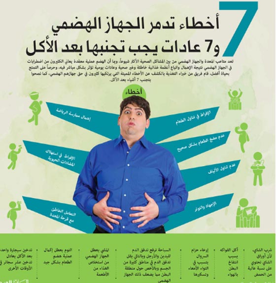 تعد متاعب المعدة والجهاز الهضمي من بين المشاكل الصحية الأكثر شيوعاً، وبما أن الهضم عملية معقدة يعاني الكثيرون من اضطرابات في الجهاز الهضمي نتيجة الإهمال واتباع أنظمة غذائية خاطئة وغير صحية وعادات يومية تؤثر بشكل مباشر فيه، وحرصاً على التمتع بحياة أفضل، قام فريق من خبراء التغذية بالكشف عن الأخطاء المميتة التي يرتكبها كثيرون في حق جهازهم الهضمي، كما نصحوا بتجنب 7 أشياء بعد الأكل.