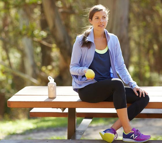 3- قبل ممارسة الرياضة: ويعد أيضاً تناول الفاكهة قبل 30 دقيقة من ممارسة التمارين الرياضية مصدراً جيداً للنشاط والطاقة.كما لفت التقرير إلى أهمية الحرص على غسل الخضراوات والفاكهة بشكل جيد قبل تناولها للتخلص من الجراثيم التي قد تتواجد بغلافها الخارجي.