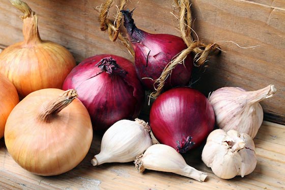 4) البصل والثوم: البصل وحبات الثوم غنية بالـ"سالفايد" وهي تساعد في تدمير الخلايا السرطانية. وتناول حبتين من الثوم في الأسبوع كفيلة بتخفيض خطر الإصابة بسرطان القولون بأكثر من 30%. أما تناول البصل بصفة يومية فيخفض خطر الإصابة بسرطان القولون ما بين 30 و50%، بحسب الدراسات.