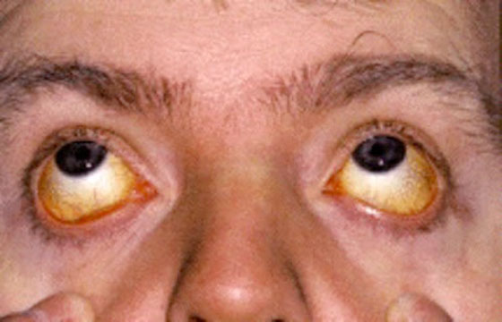 اللون الأصفر: وفقاً للمكتبة الوطنية الأميركية للطب، يمكن أن يتحول لون بشرتك وبياض عينيك إلى اللون الأصفر عندما لا يعمل الكبد بشكل صحيح، وذلك بسبب تراكم مادة صفراء في الدم تسمى البيليروبين. وتضيف الخدمة الصحية الوطنية في المملكة المتحدة أن أعراض الاصفرار -تُسمى اليرقان- يمكن أن تحدث عندما يمنعها تلف الكبد من معالجة هذا البيليروبين. من الأسباب الشائعة لهذا النوع من تلف الكبد، السرطان وشرب الكثير من الكحول والمخدرات، والتعرض للمواد السامة والعدوى المختلفة.