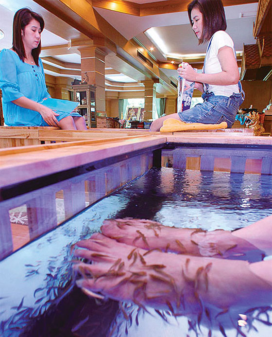 يحب الجميع الاسترخاء في المنتجعات الصحية، فهي وسيلة للاسترخاء والاستحمام وإزالة الجلد الميت، وانتشرت مؤخرا منتجعات صحية تستخدم الأسماك في التدليك. وفقا للتقارير، تم حظر منتجعات السمك في أماكن عديدة منها الولايات المتحدة الأمريكية وكندا وأوروبا؛ بسبب مخاوف متعلقة بالنظافة والصحة.