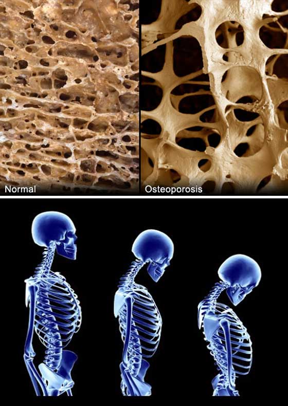 3- هشاشة العظام: التى يقل فيها سمك العظام كثيرا وتصبح أكثر قابلية للكسر، تحدث لسيدة من بين ثلاث سيدات، لكنها تحدث أيضا واحد بين كل 5 رجال، لذلك يجب أن تجرى اختبار دورى على العظام.