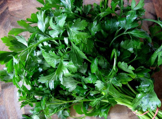 - البقدونس: يستخدم في حالات ارتفاع درجة الحرارة كما يعمل على الحد من الالتهابات وإزالة الاورام.