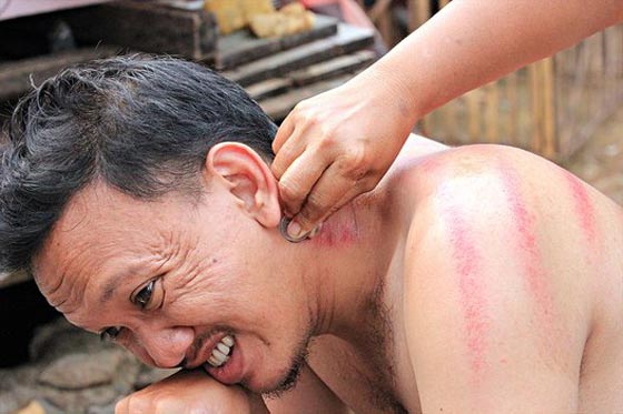 ويؤمن الكثير من سكان إندونيسيا بأن العلاج عبر النقود المعدنية وزيت جوز الهند يعد وسيلة للتخلص من مشاكل ضعف الجسد، وتراكم الغازات في المعدة، وآلام المفاصل التي تنتج جراء نزلات البرد.