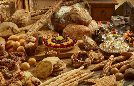 - المخبوزات: وتشتهر بغناها بالمواد الصناعية (مواد مبيضة، مواد مؤكسدة، مستحلبات، فيتامنيات، ملونات، مواد مانعة للعفن) التي تطيل من عمرها وتبقيها صالحة للاستهلاك، لكنها بالتأكيد لا تطيل عمر الانسان بل انها تضره أكثر مما تنفعه، وفقاً للتجارب التي أمكن اثباتها مخبرياً.