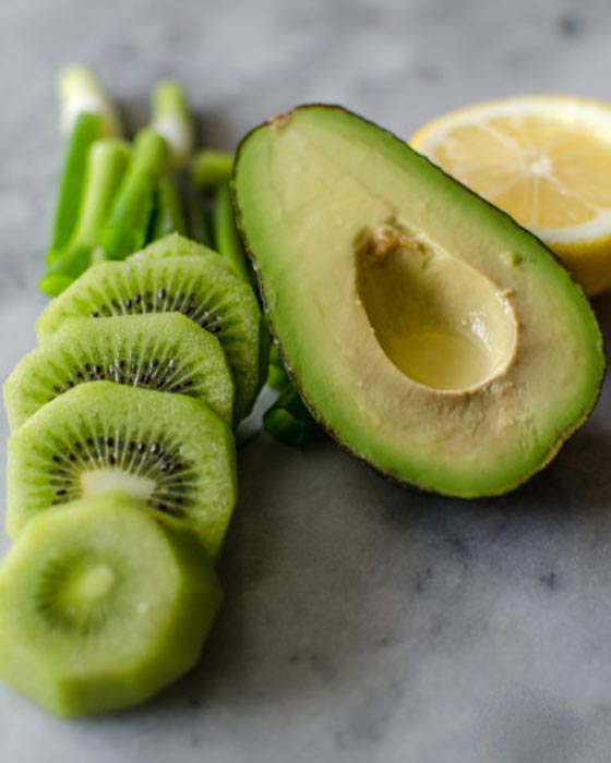 الأفوكادو غني بفيتامين "هـ" والكيوي غني بفيتامين "ج" إلى جانب عصير الليمون والنعناع