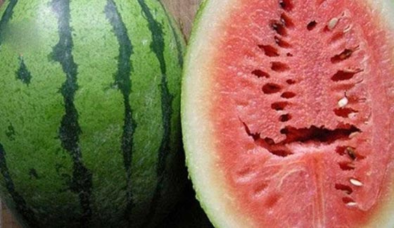 الكثير منا يرغب في تناول البطيخ بصورة مستمرة، ولكن أيضاً الكثير منا لا يعرف ان البطيخ يشكل خطورة كبيرة جدا على صحتنا، على الرغم من أنه يمتاز بفوائد عديدة، إلا أن الكثير سيغير رأيه تمامًا بعد الإطلاع على السطور التالية. فقد ثبت ان تناول البطيخ قد يسبب الإصابة بالسرطان، وذلك في حال ملاحظة وجود ثقوب كبيرة في داخلها عند فتحها او شقها، ففي هذه الحالة تكون مصنّعة. وكما جاء في التقرير، فإن تناول البطيخ المصنع، يتسبب في الإصابة بنمو الاورام الخبيثة في الجسم، كما يعمل على إعاقة الهضم والإصابة بالغثيان والإسهال.