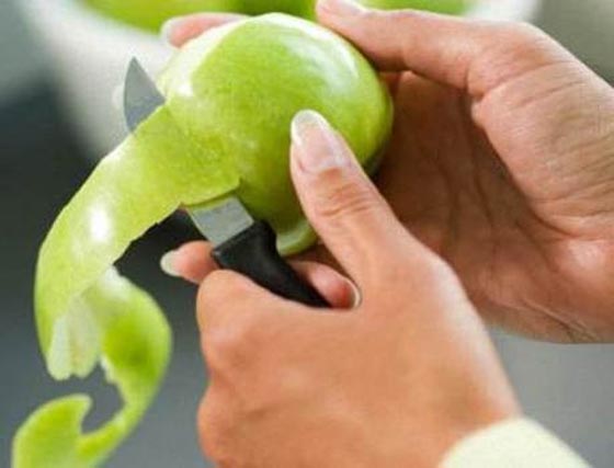 التفاح: إن تقشير التفاح الذي يقوم به معظم الناس يؤدي الى فقدان الكثير من الفيتامينات والمعادن التي تتركز أكثر ما تتركز في قشره، لذا ينصح بأكل التفاح العضوي الخالي من المبيدات بقشره، خصوصاً أنه يحتوي على مركب طبيعي يقي من داء الهشاشة العظمية، وعلى حامض الارسيوليك الذي يعطي نضارة للبشرة.