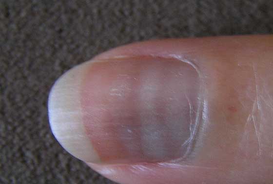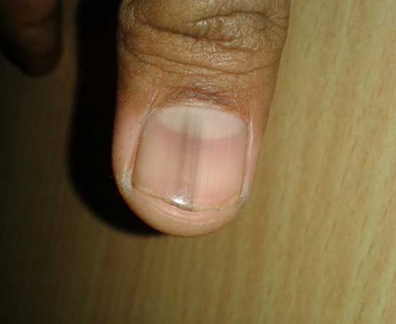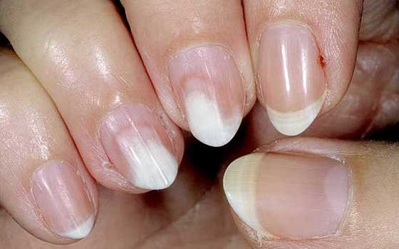 - أمراض الكلى: اذا كان نصف الظفر لونه أبيض والنصف الآخر لونه أسود فهذا دليل على الإصابة بمرض في الكلية، أو ربما بمرض آخر مثل تليّف الكبد، والداء السكري، وقصور القلب الاحتقاني.