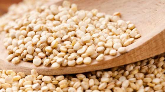 الكينوا: أصبحت الكينوا من أهم الحبوب المغذية التي تتمتع بفوائد كثيرة، إذ تحتوي على الكثير من الفيتامينات، والعناصر المغذية، والبروتينات، وتساعد على الحفاظ على طاقة الجسم. تعتبر الكينوا مصدر طاقة أساسيًا، إضافة إلى كونها مصدرًا جيدًا لحمض الفوليك، والثيامين، والحديد، فضلًا عن احتواء حصة واحدة منها على 16 بالمائة من كمية البروتين اليومية التي ينصح بها الأطباء.