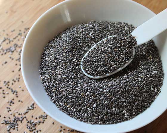 بذور الشيا: رغم أن بذور الشيا قد تكون صغيرة، إلا أنها تحتوي على كمية كبيرة من الفوائد الصحية. كما تُعتبر بذور الشيا مصدرًا مهمًا لأحماض أوميغا 3 الدهنية، وتحتوي على 42 بالمائة من القيمة اليومية للألياف في حصة واحدة، فضلًا عن غناها بالبروتين والكالسيوم.