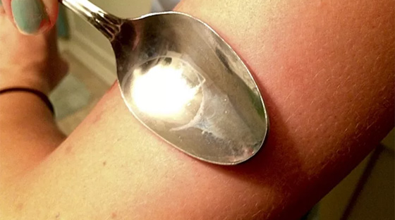 ونصح الموقع بوضع ملعقة في الماء الساخن لفترة وجيزة، ثم وضع ظهر الملعقة على مكان اللسعة بشكل مباشر والضغط عليها حوالي دقيقتين. وحسب الموقع، فإن هذا الإجراء البسيط سيشفي تماما لسعة البعوضة ويمنع الحكة المزعجة التي تليها بشكل سريع. ويحقن البعوض عند لسع الإنسان مادة بروتينية لمنع تجلط الدم. وهذه المادة البروتينية هي التي تسبب الحكة. ويقول الموقع إن إجراء الملعقة الساخنة يتلف تلك المادة ويمنع الحكة بشكل فوري.