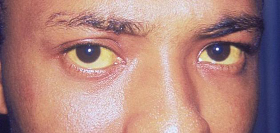 3- اصفرار بياض العين أو اليرقان: يسمى كذلك بتراكم الصفراء في الدم واليرقان، كما أنه لهذا المرض البعض من الأعراض الأخرى إلى جانب حكة اليدين والقدمين، ويشير اصفرار بياض العين إلى الإصابة بسرطان البنكرياس.