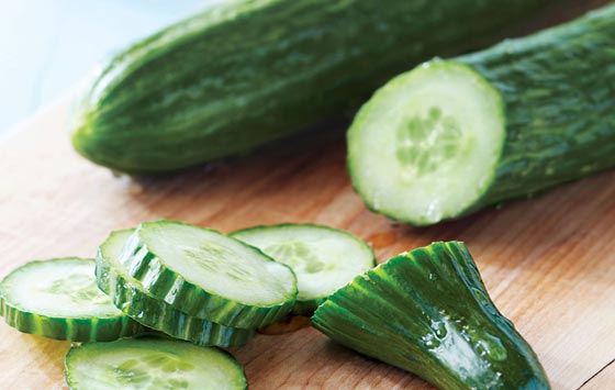 الخيار: ويعد من أكثر الأغذية غنى بالماء، إذ يشكل الأخير 97 في المئة من وزنه، لذا فهو يرطّب الجسم ويقي من الشعور بالعطش. والخيار غني بالفيتامينات والمعادن، وهو يعد مصدراً جيداً للألياف الغذائية ومضادات الأكسدة. ويشتهر الخيار بأنه فقير جداً بالطاقة، لهذا ينصح به للراغبين في جعله مرطباً ممتازاً للجسم.