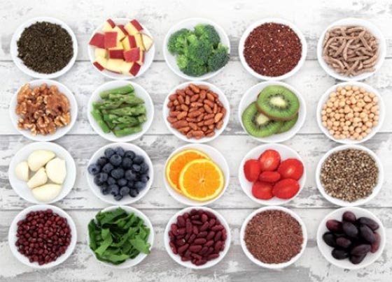 - الفيتامين سي، ويوجد في الحمضيات، والكيوي، والفراولة، والخضار الورقية الخضراء، والجوافة، والقنبيط.
