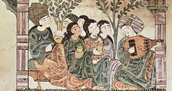 ولا بد من التوقف عند العلاج بالموسيقى ودوره الكبير، وقد كان الطبيب عند العرب لابد أن يكون مجيداً للعزف على العود، وكمال الطب من إجادة العزف، كذا العلاجات لابد من اشتمالها على اللحن والتنغيم، فالرازي كان ضارباً للعود واستخدمه في شفاء العلل النفسية وله تجارب في ذلك. أيضاً كان الفارابي قد قام بدور هام في العلاج_النفسي بالموسيقي، ويقال إنه اخترع آلة القانون المعروفة في إطار البحث عن وسائل أكثر تأثيراً على النفس البشرية ومزاجها، ليقينه بدور الموسيقى في تحريك الانفعالات البشرية، وحيث ينسب أنه عزف عليها مرة فأضحك الحضور وعزف مرة ثانية فأبكاهم. و كان المدخل إلى السيطرة على الحواس أو تهذيبها هو سبيل العلاج لجلّ الأمراض النفسية، حيث يسيطر على السمع من خلال الموسيقى والأنغام وعلى العين من خلال المناظر الرائعة والطبيعة الخلابة والحدائق وعلى الذوق من خلال الأطعمة التي يتم اختيارها بعناية، والشم من خلال العطور الطبيعية والزهور التي تدخل البهجة في قلوب المجانين وتمتع أنظارهم كذلك.