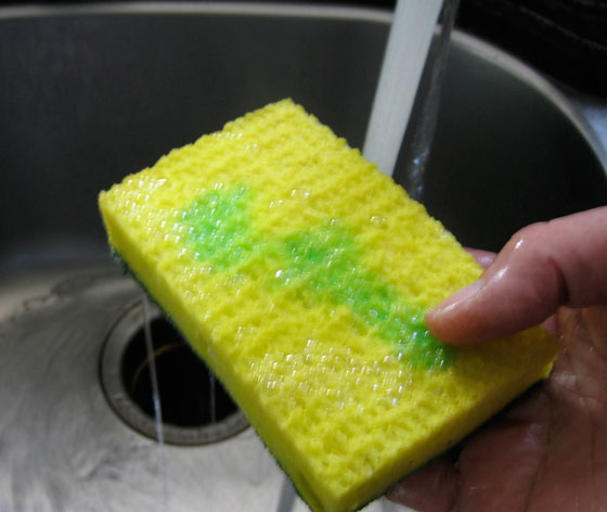 وقد تبين أنه بغسل الإسفنجة، فإن الشخص يقتل قسما صغيراً منها، لكنه يفسح المجال لتنامي أعداد هائلة منها أيضاً، ولأنواع أكثر خطورة أيضاً. كما أظهرت التحليلات أن تركيزات البكتيريا مثل موراكسيلا أوسلونزيس أعلى بكثير على الاسفنج التي تم تنظيفها وغسلها بانتظام، وهي بكتيريا تسبب العدوى للبشر. (على الرغم من أنه من غير الواضح مدى احتمال إصابتك عبر الإسفنج). ويبدو أنه في النهاية الحل الأمثل لتلك "المحيطات" من البكتيريا يكمن في استبدال إسفنجة الجلي بأخرى جديدة بشكل دوري ومستمر.