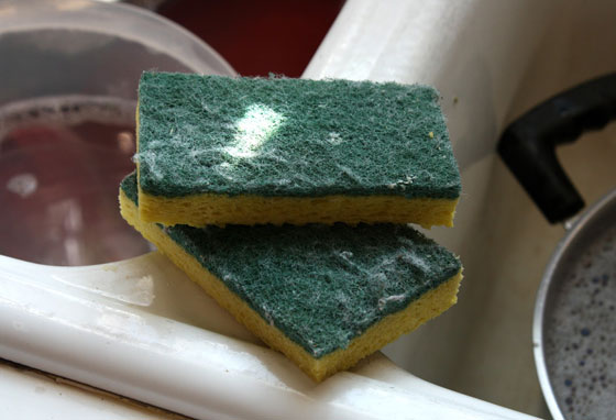 يدرك العديد من ربات البيوت أن إسفنجة جلي الصحون تحتوي على كميات من البكتيريا، لذا يعتقدن أنه من الجيد غسلها باستمرار أو تعقيمها، إلا أن ظنهن ليس في محله على الإطلاق. فهذه القطعة البسيطة في المطبخ هي بحسب الدراسات "الحديثة والقديمة" على السواء بحر من البكتيريا. ففي دراسة قديمة تعود إلى خمس سنوات، خلص علماء في مجال الأحياء الدقيقة الى استنتاج "اعتبر صادماً" في حينه وهو أن إسفنجة غسل الصحون تحتوي على بكتيريا يفوق عددها ما على مقعد المرحاض من بكتيريا.