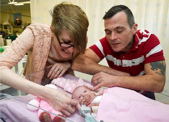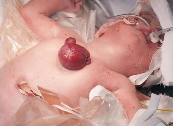 بعد ساعة من ولادتها، نجح الأطباء في إجراء جراحة نادرة لرضيعة وُلدت بقلب خارج جسمها، في سابقة تعد الأولى التي تشهدها بريطانيا. وبحسب ما ورد في صحيفة بريطانية، فقد اكتشف الأطباء، منذ الأسبوع التاسع من الحمل أن قلب الجنين وجزءاً من المعدة ينموان خارج الجسم، واعتقد الأطباء أنه سيكون من الصعب إنقاذ حياة الرضيعة، التي سُميت فيما بعد فانيلوب ويلكينز، بعد الولادة، إلا أن الإنسان لا يجب أبداً أن يفقد الأمل طالما هناك قلب ينبض.
