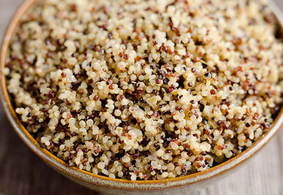 10) الكينوا: الكينوا غنية بالبروتين والألياف والحديد، لذا فهي من أفضل الأطعمة التي يجب ان تلجأ إليها من أجل "شحن" طاقة جسمك. كما أن الكينوا تحتوي على كمية قليلة من أحماض "أوميغا 3" وكميات كبيرة من الدهون أحادية التشبع. وتحتوي الكينوا على 9 أنواع من أحماض الأماينو Amino المفيدة جداً للجسم.