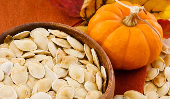 7) لب القرع: إذا كنت ترغب بتعزيز الطاقة في جسمك، فعليك بلب القرع، فهي غنية بأحماض "أوميغا 3" والزنك والحديد والمعادن والفيتامينات التي تقاوم أي شعور بالإرهاق. كما أن لب القرع يساعد على نوم هادئ وصحي.