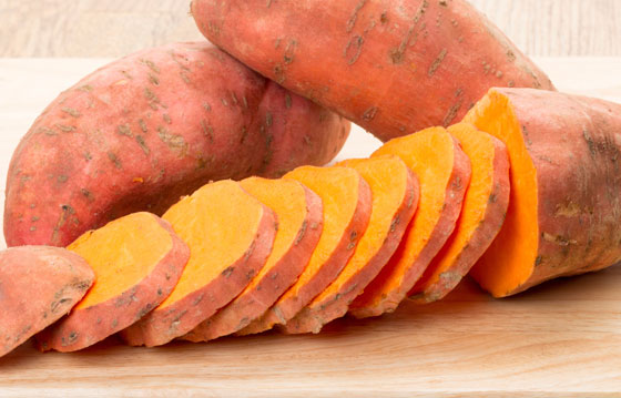 4) البطاطا الحلوة: البطاطا الحلوة غنية بالألياف والكربوهيدرات التي عادة ما تمد الجسم بحوالي 25% من احتياجاته من الطاقة. كما أن البطاطا الحلوة تحتوي على البوتاسيوم الذي يساعد في التخفيف من التوتر، ويمد الجسم بالطاقة.