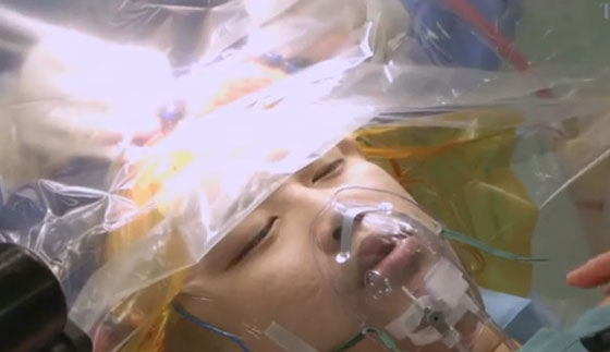 جرى تشخيص حالة شاب سنغافوري يبلغ من العمر 23 عاماً بأنّه قد يكون مصاباً بورم خبيث، بعدما تطوّع للخضوع لاختبار آلة تصوير جديدة في المستشفى، في ربيع عام 2017. وبعد ذلك بأقلّ من أسبوع، قرَّر أطباء الشاب إجراء عملية له خوفاً من انتشار الورم الخبيث وإضراره بوظائف دماغه. وقد أجريت العملية والمريض محتفظ بكامل وعيه، للتأكّد من أنّ مركز اللّغة لديه لم يصب بأيِّ أضرار أثناء العملية