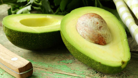 يحتوي الأفوكادو على الألياف والدهون الصحية التي تعمل على تقليل الكوليسترول في الدم بنسبة 20%، و نسبة 40 % من حمض الفوليك لتقليل الإصابة بأمراض القلب.