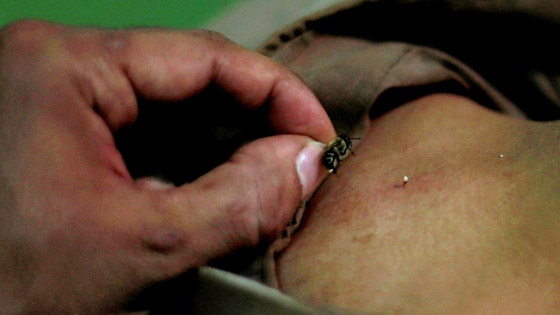 على سطح منزله على مشارف القاهرة، يربي عمر أبو الحسن الآلاف من نحل العسل من أجل سمه لا عسله. وبعد أن أدرك أبو الحسن (30 عاماً) فوائد النحل من القرآن الكريم، قرر قبل خمس سنوات تربية النحل واستخدام سمه في الطب البديل. ويعتقد أن لسع النحل يمكن أن يخفف الألم ويعالج أمراضاً مثل الروماتيزم.