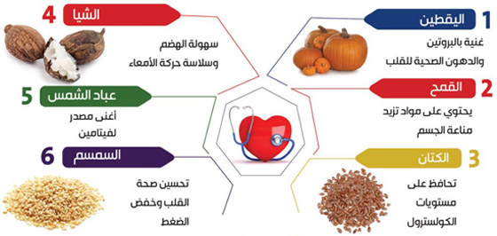 يجتهد الباحثون لاكتشاف أدوية تساعد في علاج أمراض القلب في مراحل مبكرة، لكن بعض المتخصصين يعتبرون أن الوقاية خير من العلاج وينصحون بتناول بعض الحبوب للحفاظ على قلب قوي. وتتميز بعض الحبوب بأنها مصدر للعديد من العناصر الغذائية مثل الفیتامینات والألیاف والبروتینات والدھون الصحیة، كما أن بعضها يحتوي على المعادن ومضادات الأكسدة، التي يحتاجها الجسم للاحتفاظ بصحة جيدة. وينصح متخصصون بتناول البذور في وجبات خفيفة يوميا، مشيرين إلى أنها تساعد في الحفاظ على صحة القلب ومكافحة السرطان، بحسب جريدة سعودية، التي نشرت رسما توضيحيا لـ6 أنواع من الحبوب المفيدة للجسم.