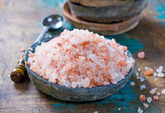 4. ملح الهيمالايا: أما ملح الهيمالايا، فيحتوي على المعادن التي تعزز من أداء الأعصاب، وتقلل الالتهابات، وتخفف الآلام. كما أن ملح الهيمالايا يحسن انقباضات العضلات مما يسمح بخروج فضلات الطعام بسهولة.